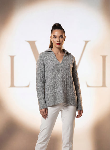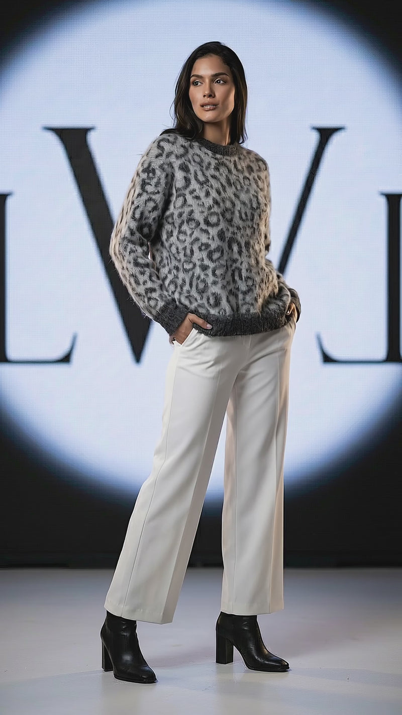 Accessories: Wear minimal jewelry with silver or pearl details to complement the sweater's color.