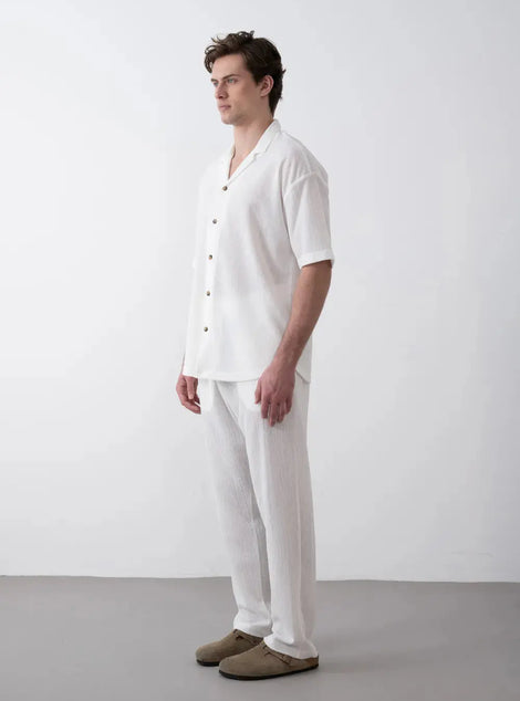 Asit Yıkamalı %100 Tensel Oversize Kısa Kol Erkek Gömlek