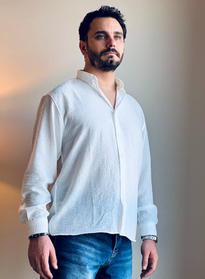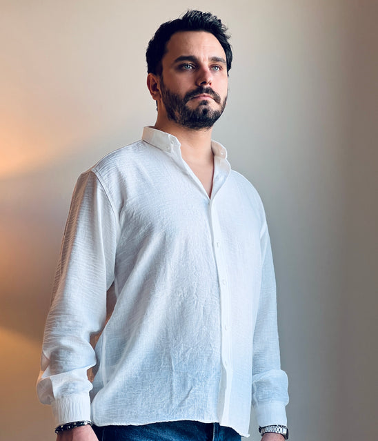 OVERSIZE DÖKÜMLÜ CRINKLE BEYAZ GÖMLEK