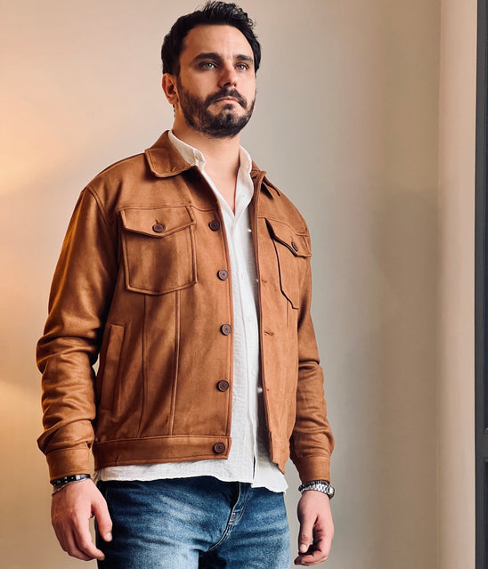 Süet Scuba Dört Cepli Regular Fit Erkek Ceket