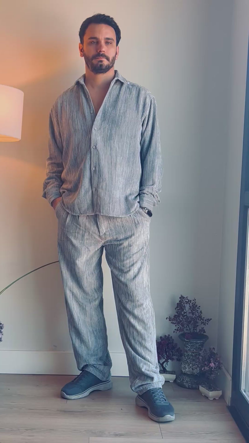 EFEKTLİ KADİFE PANTOLON GRİ (Mavi Efektli)
