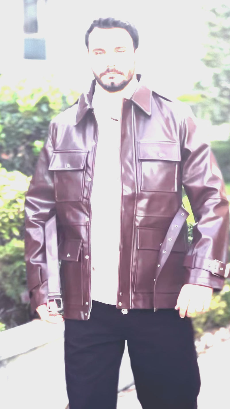 Ayarlanabilir kemer ve apolet detaylı, koleksiyona özel elcik ayrıntılı, dokusuz deri parka.