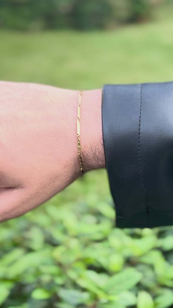 Modern ve sade bir şıklık arayanlar için! Bu ince zincir bileklik, klasik boncuklu modellere zarif ve minimalist bir alternatif sunar. Yassı ve hafif burgulu zincir yapısı, ışığı farklı açılardan yansıtarak bilekte zarif ve dikkat çekmeyen bir parlaklık oluşturur. Hafif yapısı sayesinde gün boyu konforlu kullanım sağlayan bu bileklik, hem resmi hem de casual kombinleriniz için mükemmel bir tamamlayıcıdır.