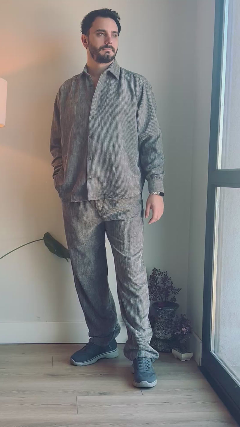Kadife Dokulu Oversize Erkek Gömlek